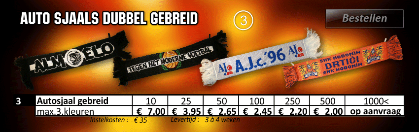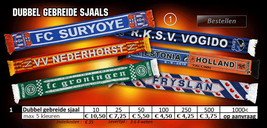 fansjaal, fansjaals, supporter sjaal, supporter shawl, supportersjaal, vlaggen, bedrukte t-shirts, gebreide mutsen, baniertjes, vanen, puntvanen, schildvanen,