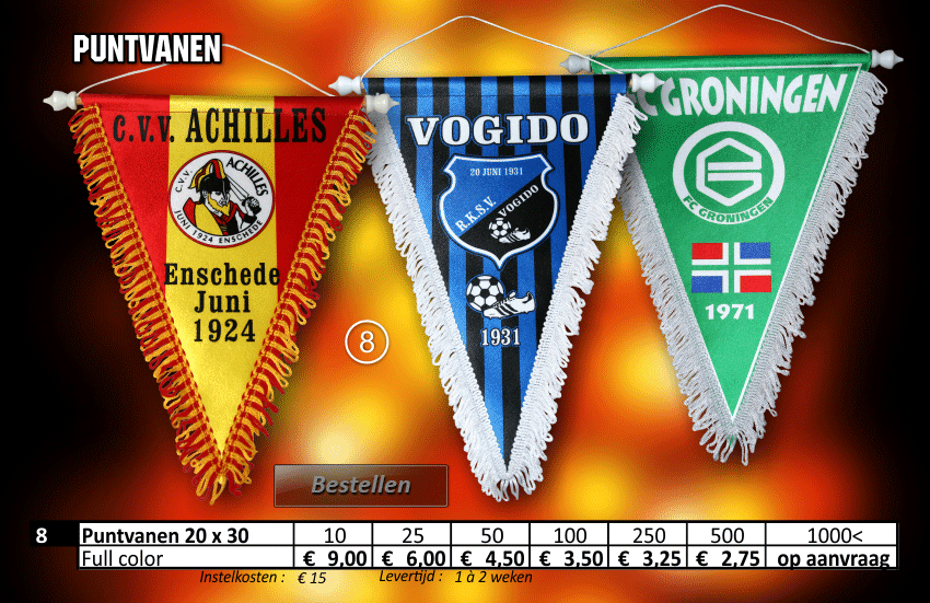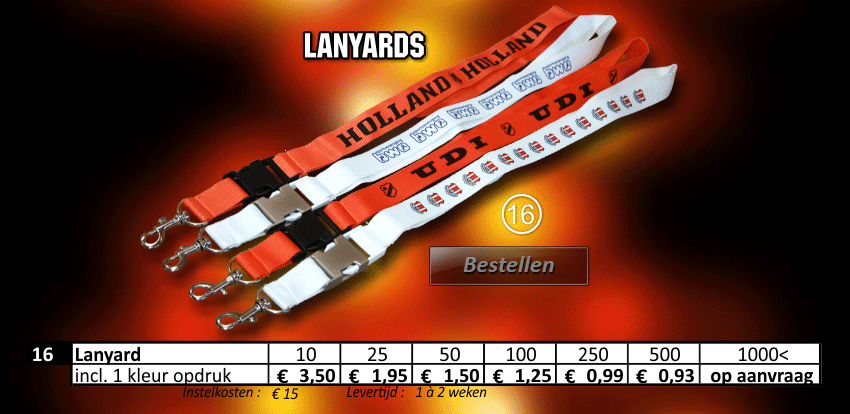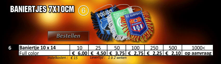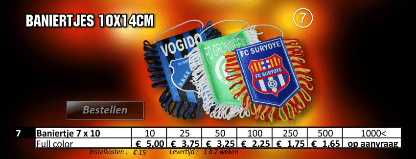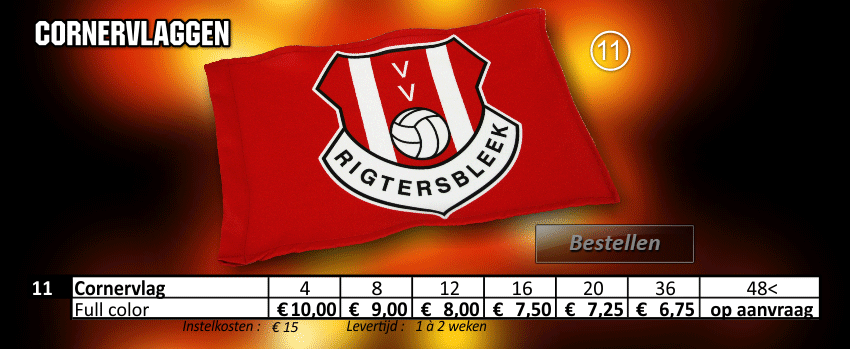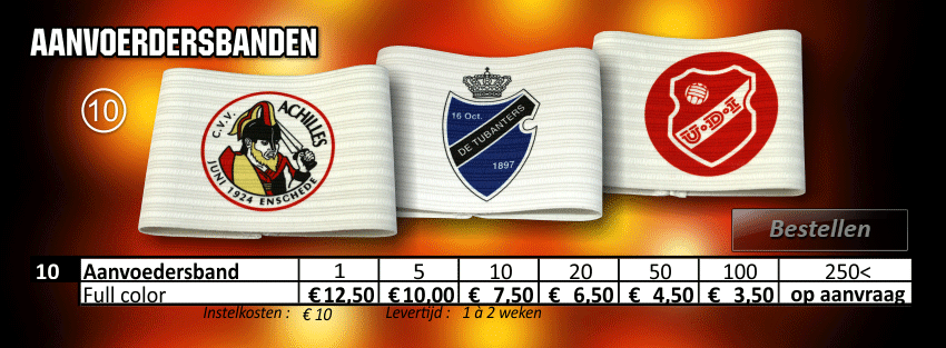 aanvoerdersbanden, aanvoerdersband, cornervlaggen, cornervlag, promo cap, minikussens, lanyard, lanyards, trainings hesjes, bidons, sleutelhangers, bedrukte