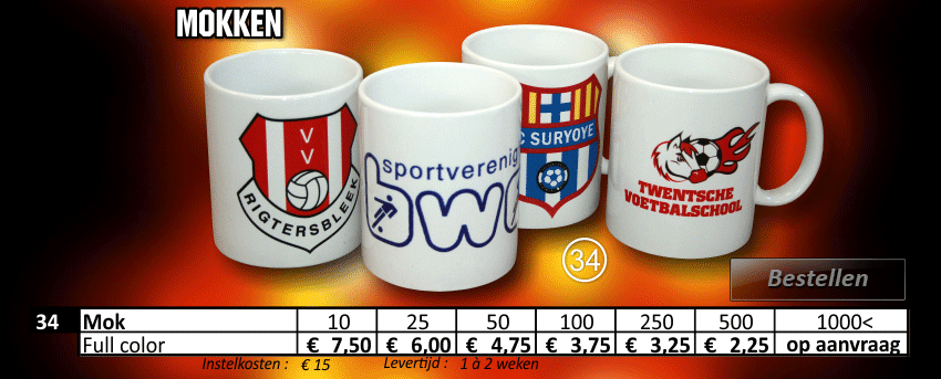 mokken, prijsbeker, prijsbekers, sportprijzen, voetbalshirt, zeefdruk logo, textiel bedrukken, zeefdrukken, logo borduren, zeefdruk t-shirt